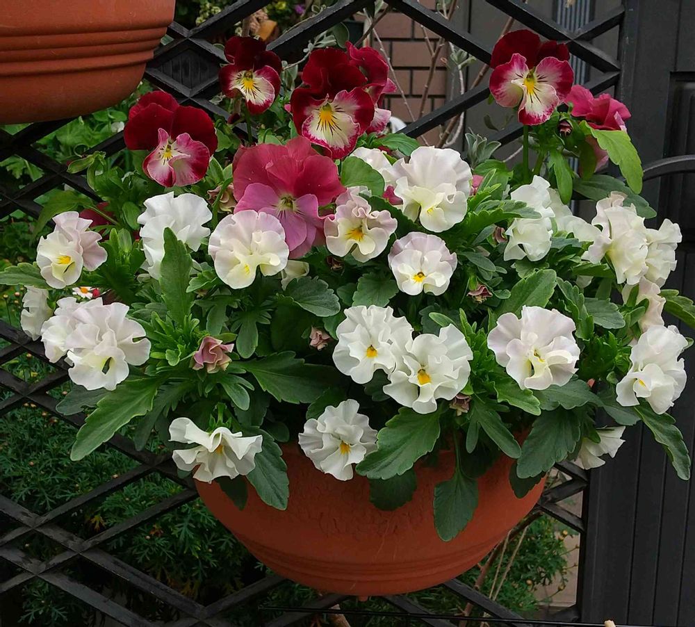 おしゃれビオラjoy。初めてフリル咲きのビオラ買いましたが、茎がとてもしっかりして、花付きも花持ちも良いです!