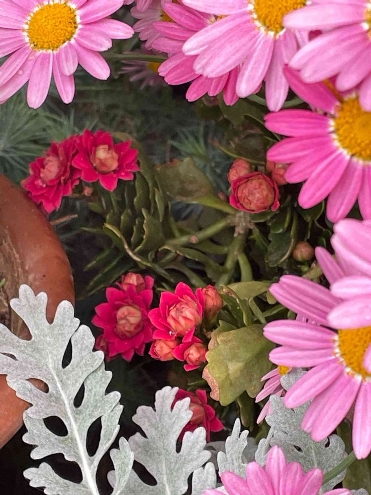 マーガレットの足元で、カランコエもひっそり咲きました♥️