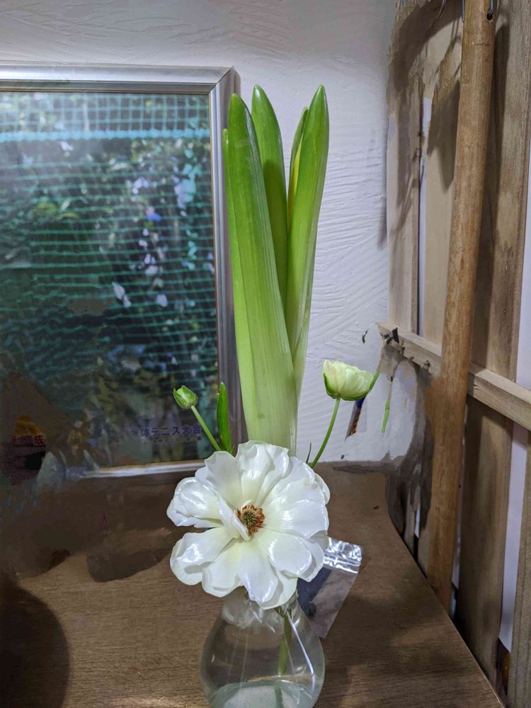 お天気がよくありません(泣)雨が上がると風が強くなり風が止むとまたすぐに雨の日に。ラックスちゃんが花盛りなのに雨にやらてちゃってます。雨間に花がら摘みしてたら間違って切ってしまったニノスちゃん。一輪だけではさびしいので花の終わったヒヤシンスちゃんと同居してもらってます。これはこれでアンバランスだけど(笑)