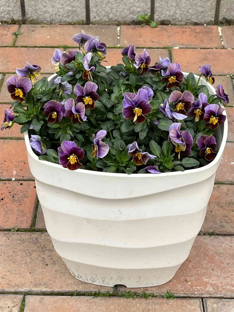 アンティークビオラフロステッドチョコレートです。それぞれの花の色が少しずつ違っているような感じでレトロ感のあるお花です。