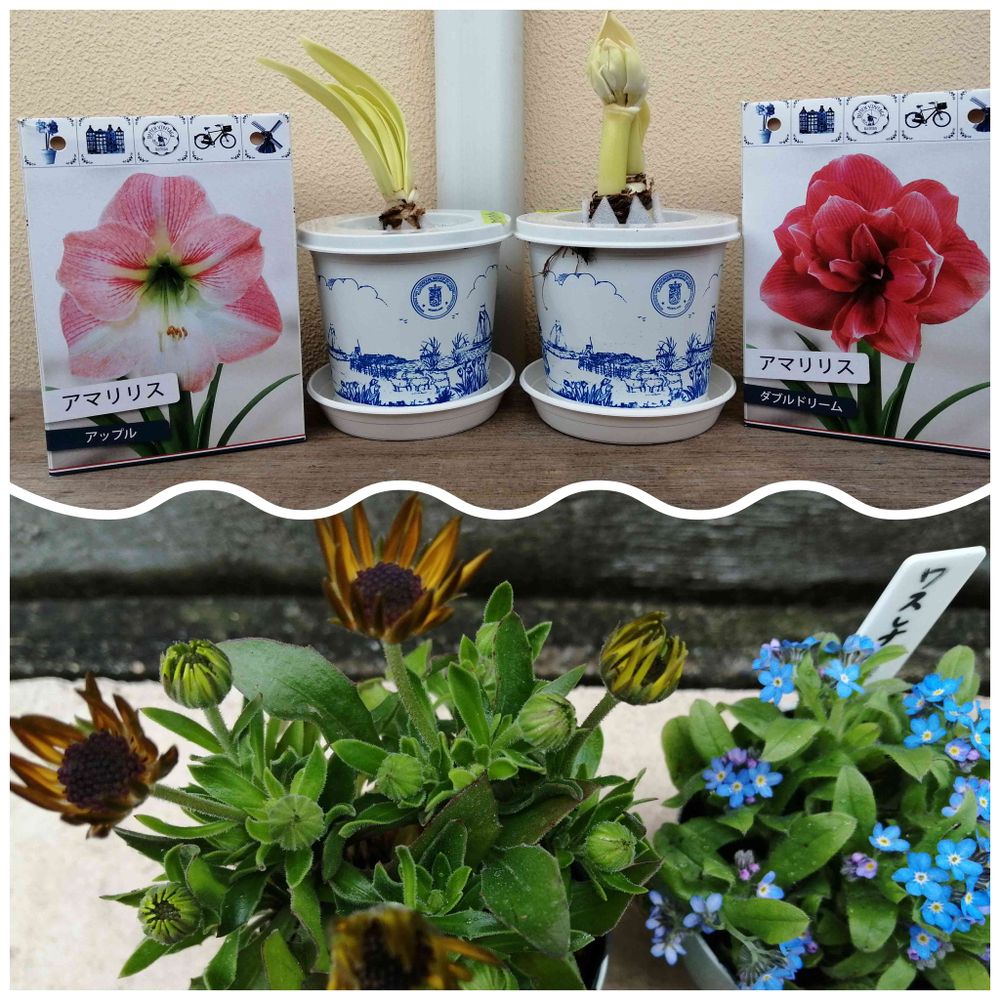 午前に花友さんからアマリリス2種類とオステオスペルマム、ワスレナグサが届きました🎁🎶