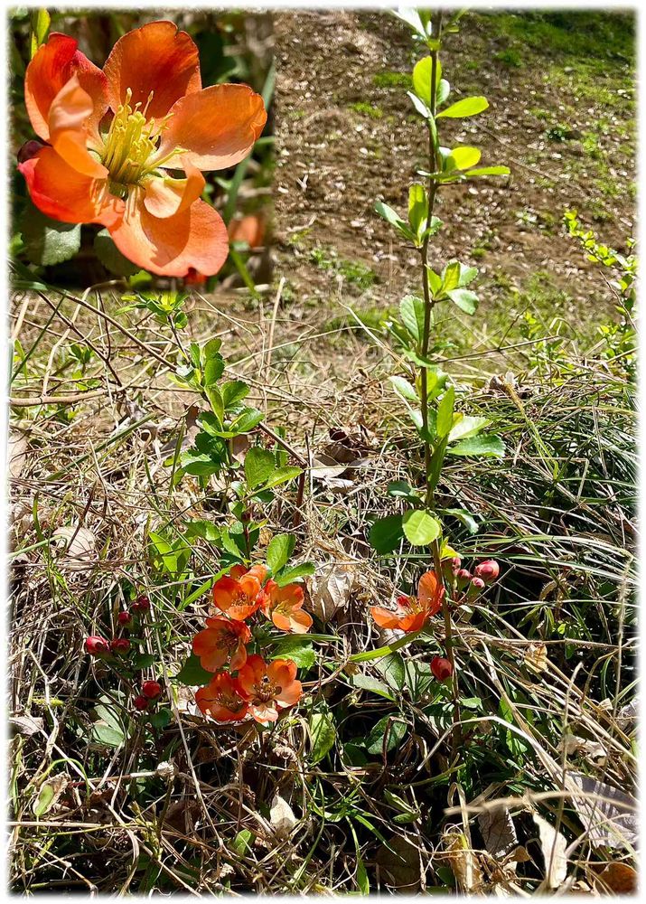 ボケは白やピンク色、赤い種もありますが、日本のクサボケはオレンジ色しかありませんから、森をキョロキョロすれば今なら咲いています🧡☺️