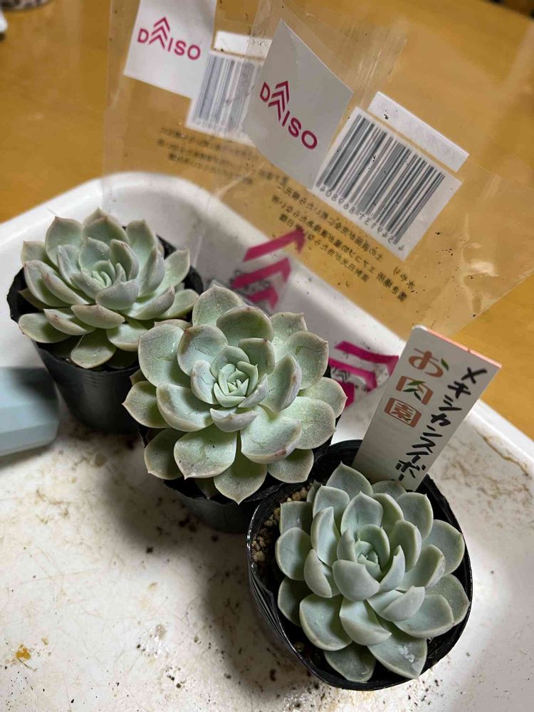 私が良く行くダイソーさんでは元気なエケベリアに出会ったことがなく諦めていました…。が、今日別のダイソーであっさりお会いしましたw