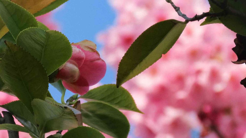花と虫と風と空とさんのツバキ,陽光桜,キュンキュン乙女倶楽部の投稿画像