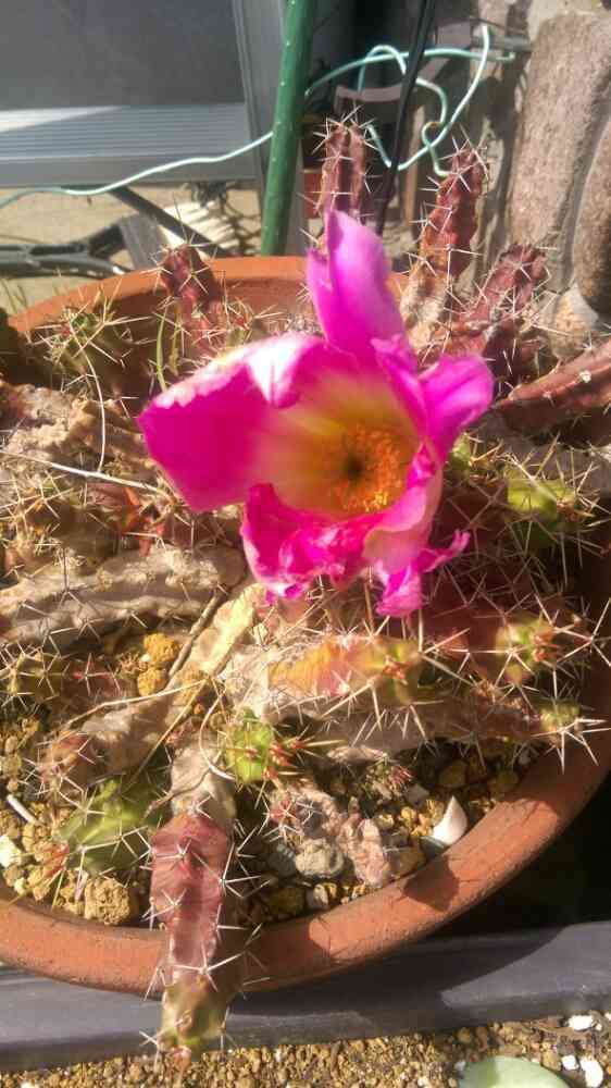 放置してたサボテンにもいつの間にか花咲いてました、ずっと植え代えしてないのに生命力凄いなぁ
