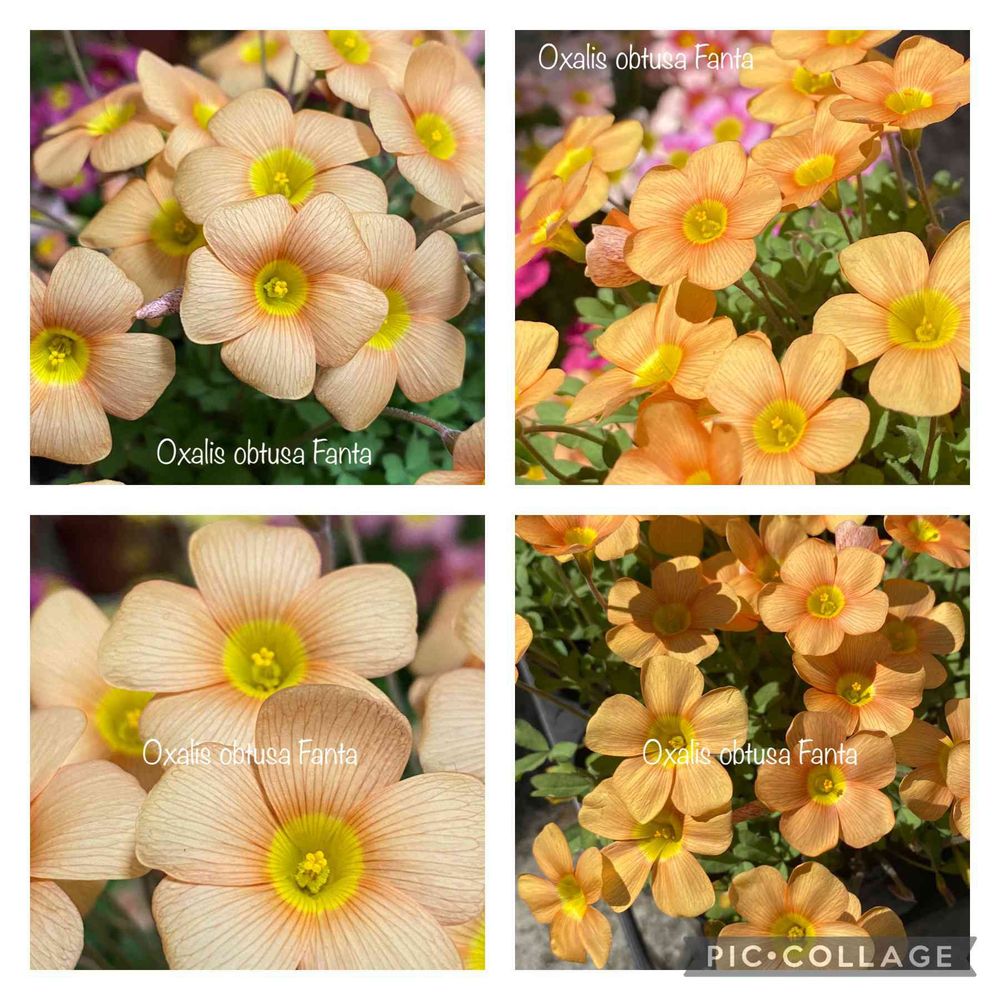 オキザリスを中心に、小さな庭で花を楽しんでいます。