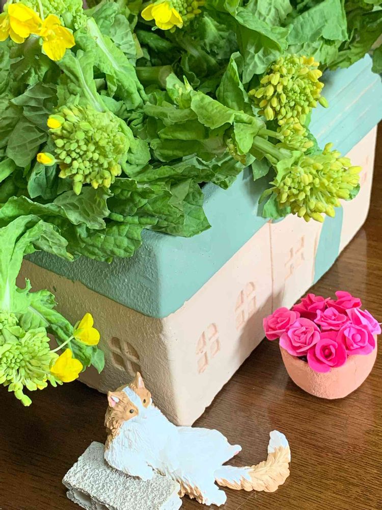 はーい、菜の花食べたよー。ほしかちゃん地方は寒いからまだかな?