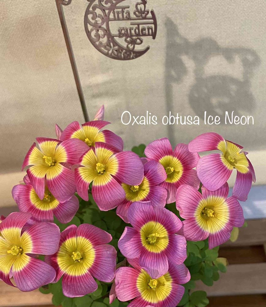 オキザリスを中心に、小さな庭で花を楽しんでいます。
