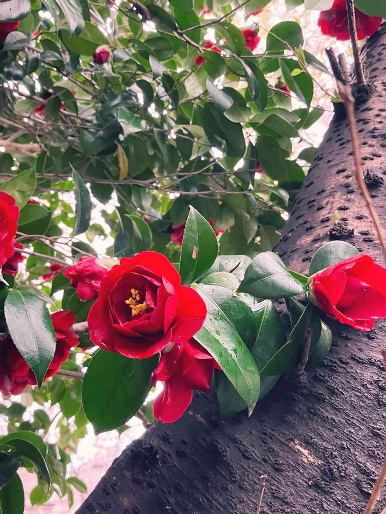 かよこさんのお出かけ先,赤色つばき,公園散歩♪の投稿画像