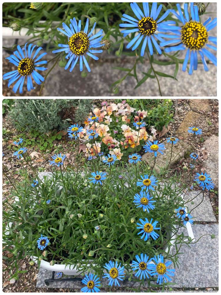 水色のお花、あったら欲しいけど、キングフィッシューデージー、ネットでもないですね。ホムセンや園芸店で置いてるかしら...🤔