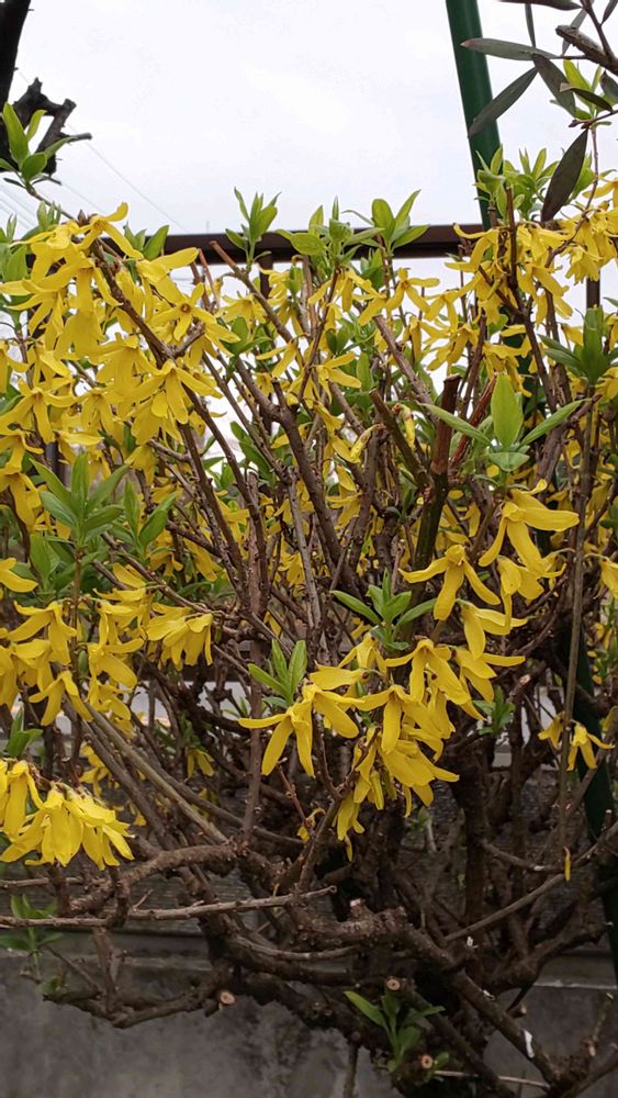 レンギョウ💛の隣にアーモンドの木があってアーモンド🌸が散り始めるとレンギョウが綺麗に咲いてくれます。