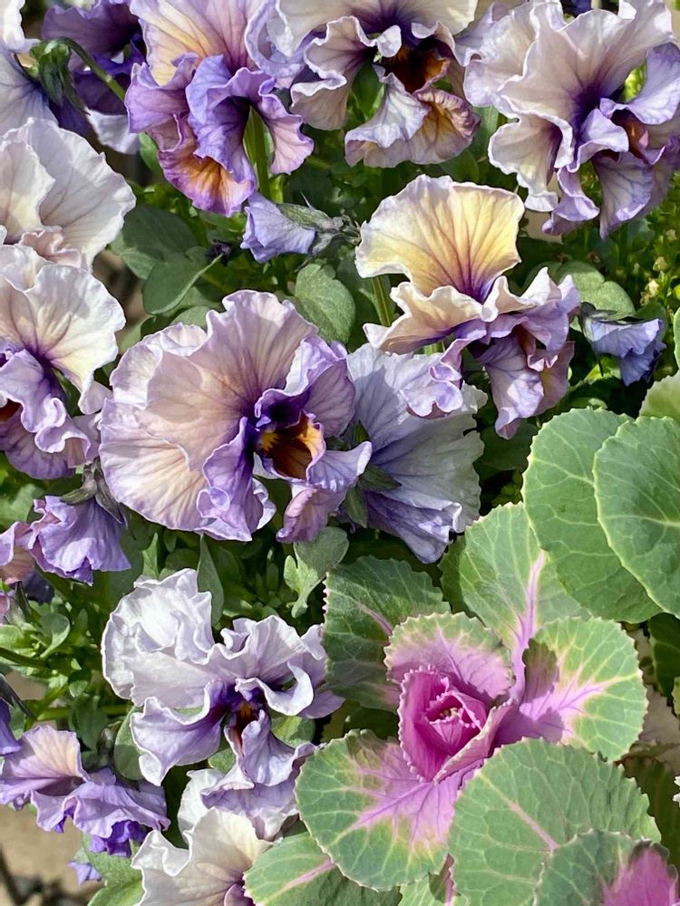 ビオラ ヌーヴェルヴァーグとハボタンの寄せ植えです🪴