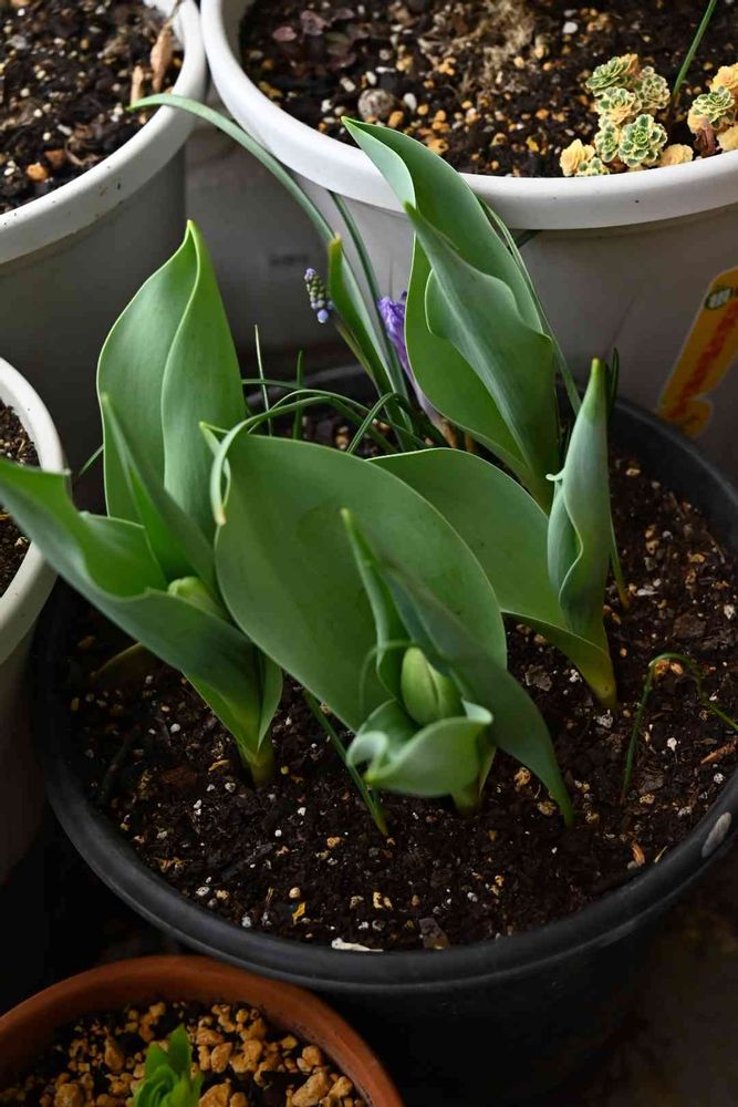 去年の秋に植えたチューリップの葉っぱが成長してきました。