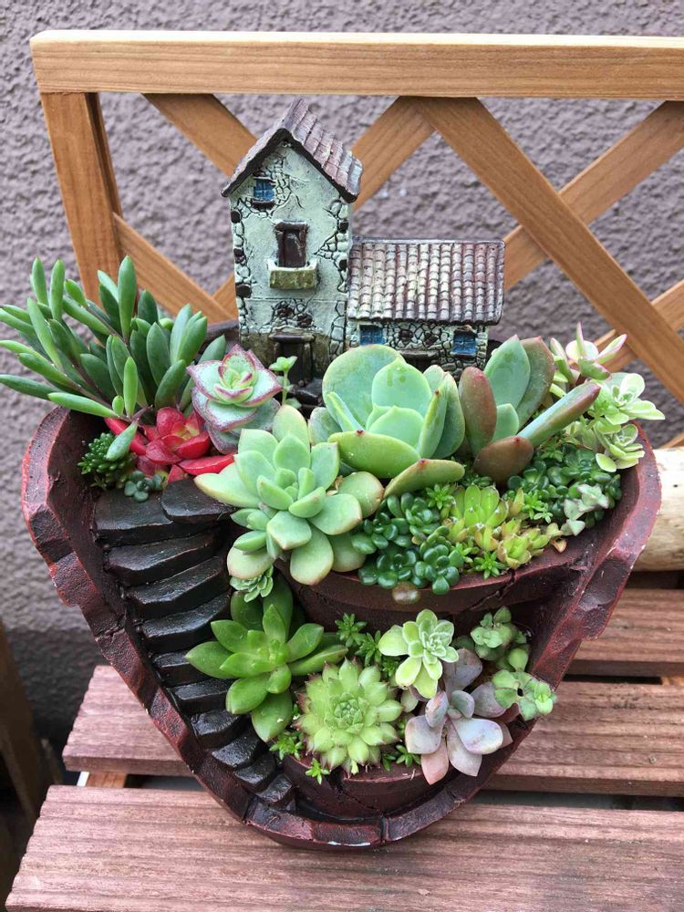 ネットで買ったブロークンポット風のプランターです🍀多肉ちゃんを植えるだけで簡単にミニチュアガーデン風寄せ植えが出来ました💚