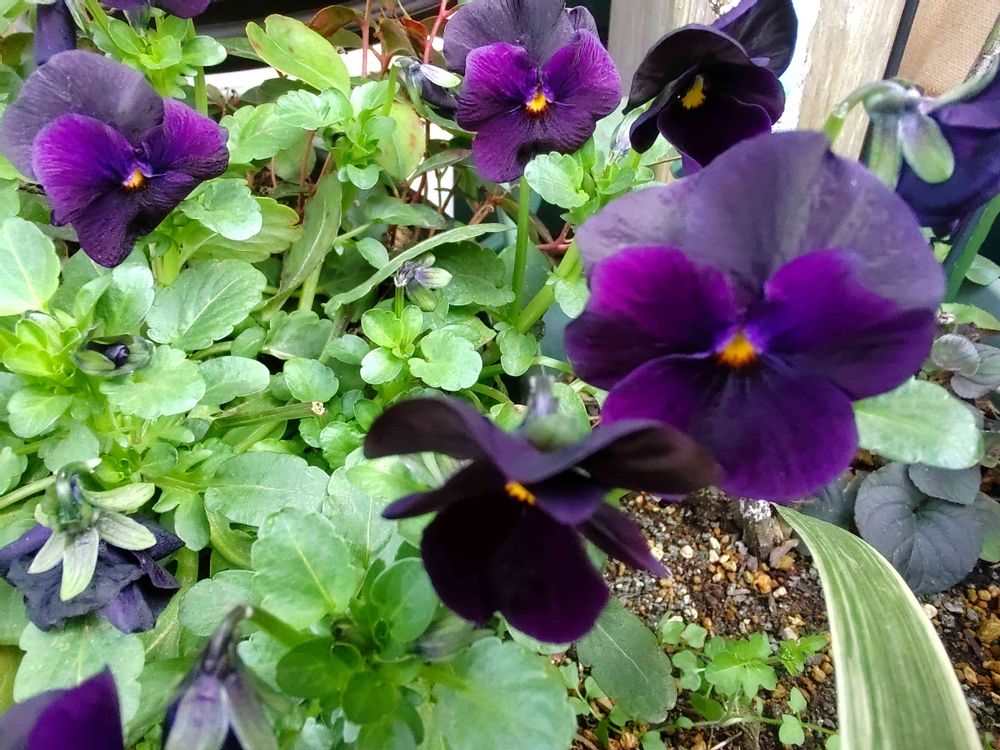 ブラックビオラのつもりで去年植えましたが、花が大きく咲く様になったら黒めの紫?