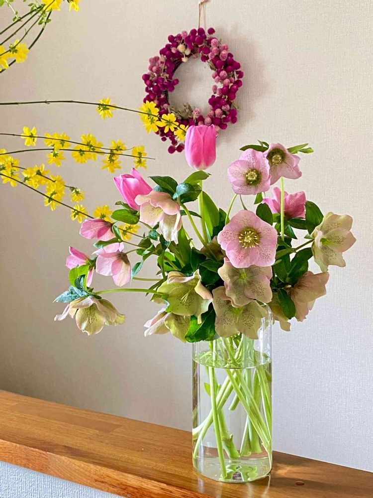 夜中からシトシト雨が降り、肌寒い一日になりそうです。家の中も暗いので、庭のクリスマスローズを少し切って廊下に・・元気もらって頑張ります😊