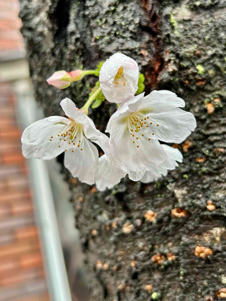大きな老木の右から顔を出してるソメイヨシノは🌸まだ元気いっぱいで可愛らしいです🥰
