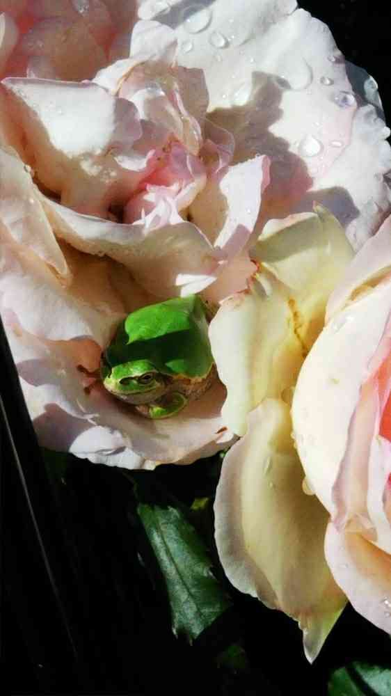 やっぱりカエル🐸ちゃんは🌹が好きなのね😆