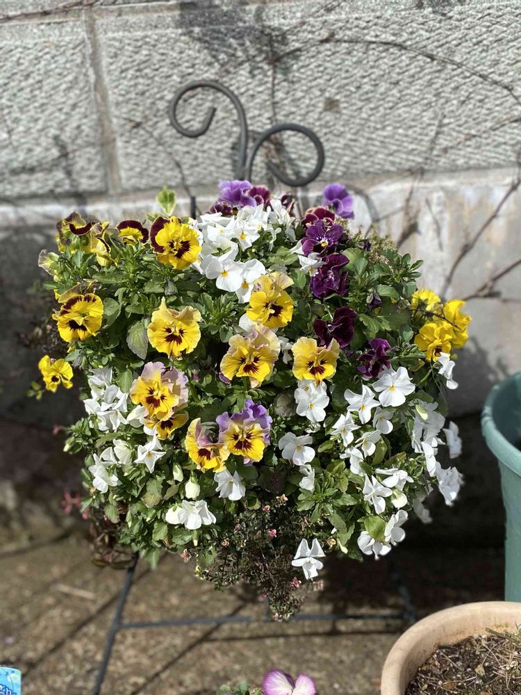 こんにちは😊今日は雨だけど☔️これは昨日の写真だょ😁パンジービオラがようやくこんな感じに賑やかになった🤭