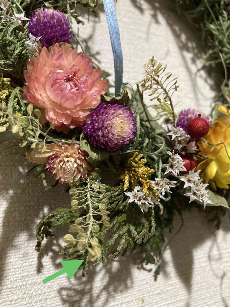 昨年作ったリースにドライ🤎を使用。生きている緑💚の豆軍配薺に会いたい。出会っていても気が付かないだけなのでしょうか?