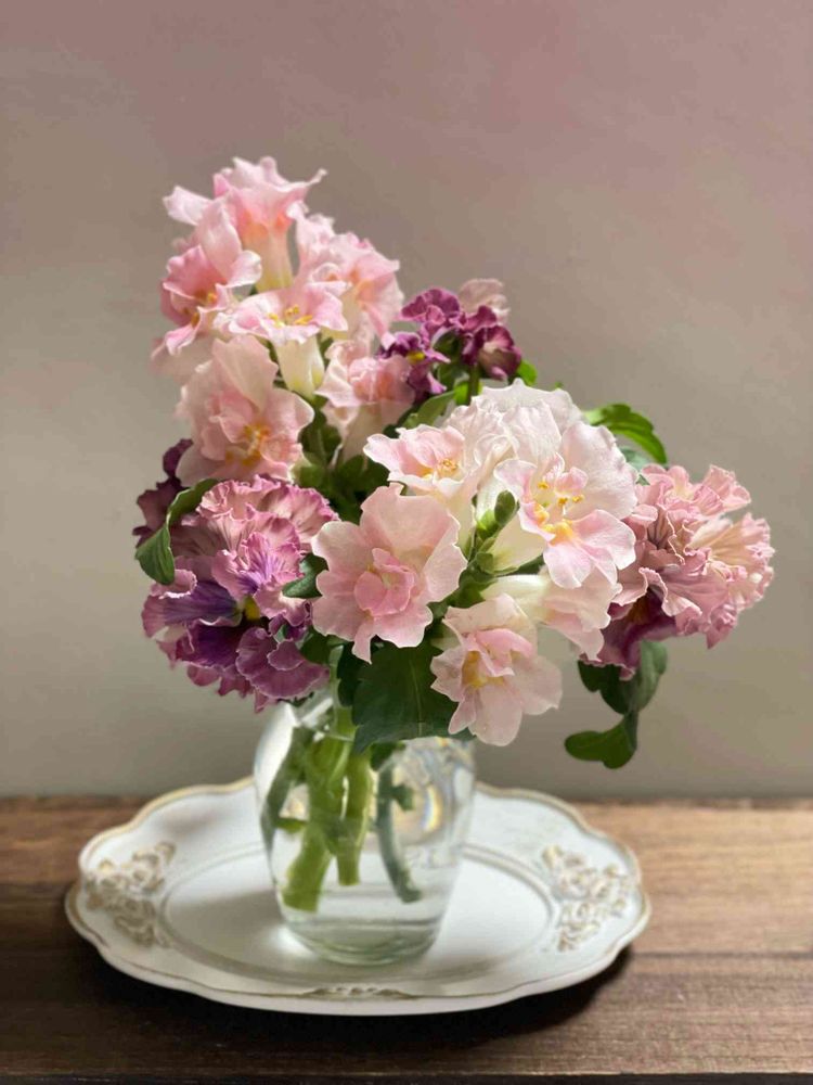 折れた金魚草と切り詰めたアントワネットを挿しました😊