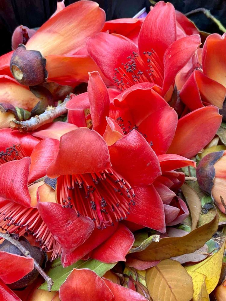 街中にキワタのお花が咲いてます♥️公園の清掃員の人が集めたゴミ箱はキワタのお花でいっぱいです🌺🌺🌺