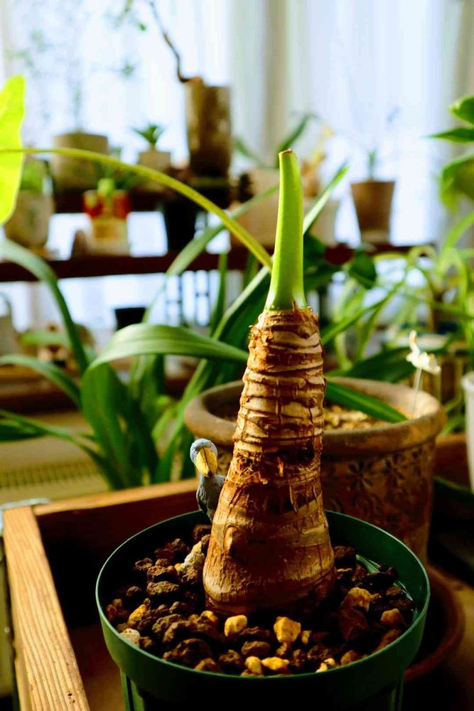 前回根元をスパッと🗡️したクワズイモ今朝鉢にinしましたよ❗
