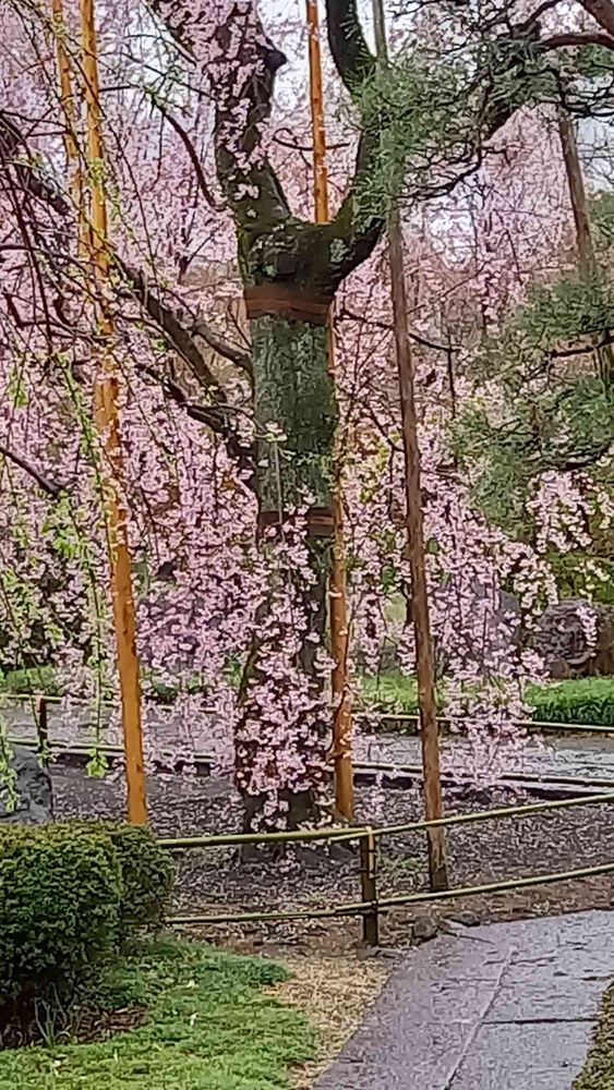 枝垂れ桜雨の中、素敵に咲いてますね❣️