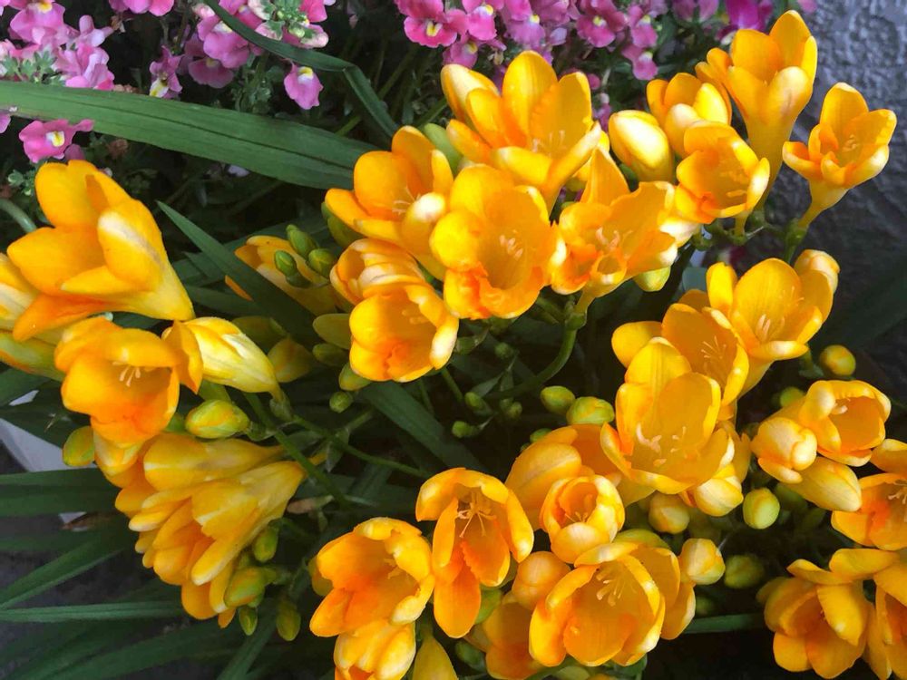 玄関先に取り込んでいる間にフリージアが満開😊慌てて陽当たりの良い場所に移動しました❣️
