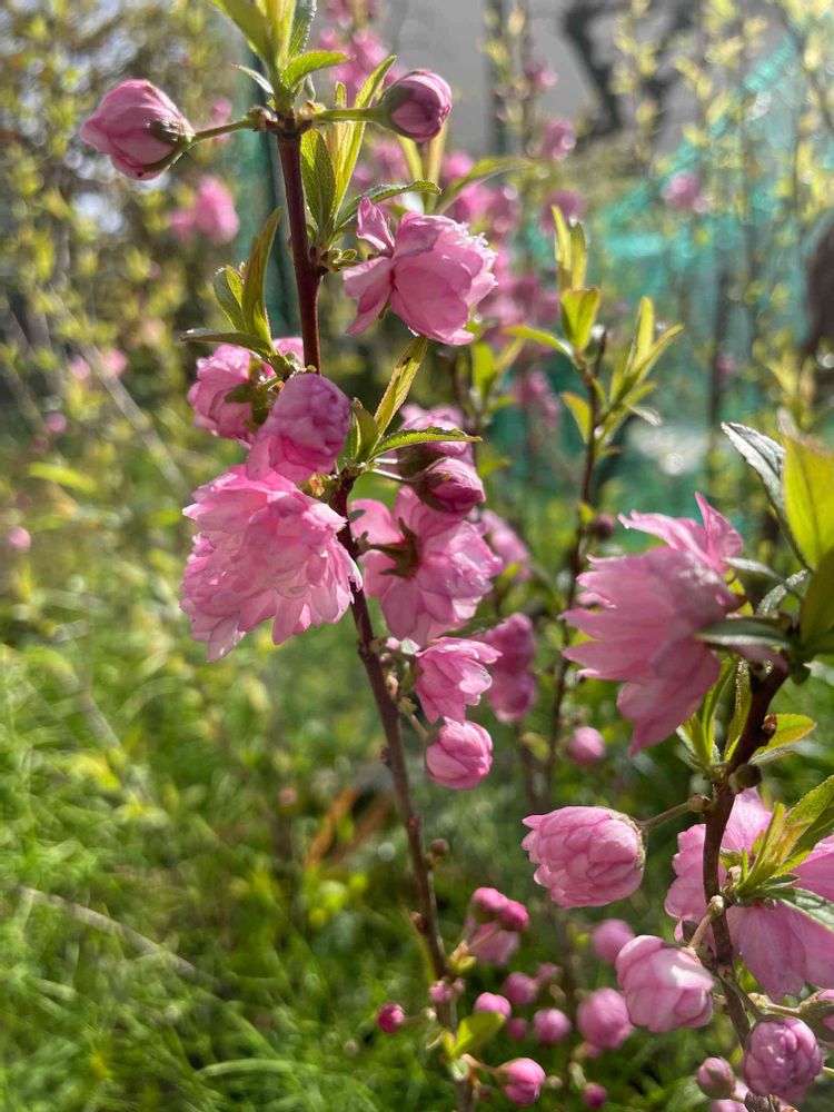 晴れた朝の庭桜 やはり 元気なピンクです💖