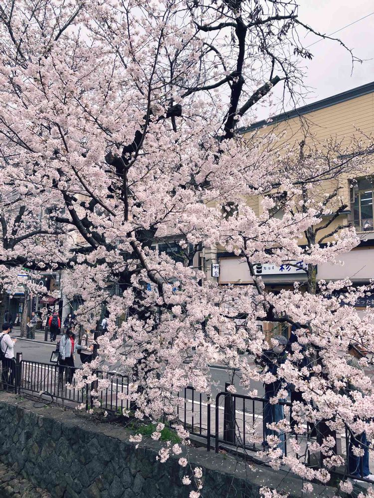 まずは河原町を降りて歩くと、高瀬川沿いのサクラがずらっと両側に満開近くになっていて、サクラは期待していなかったので驚きました🌸🌸