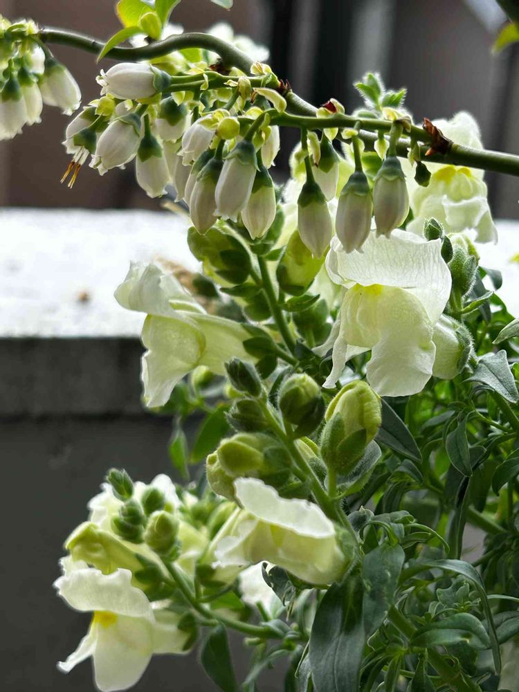 ブルーベリーの鉢に金魚草の種が落ち花咲きました😄
