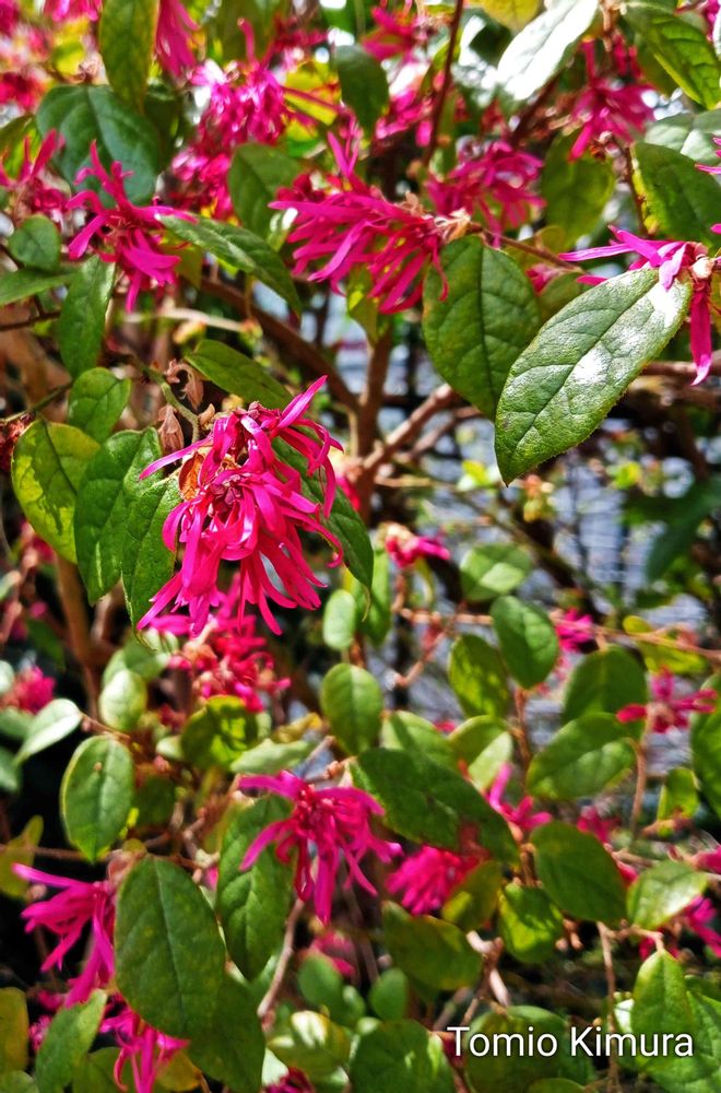 小さな庭の花色が赤いトキワマンサクが満開になりました。