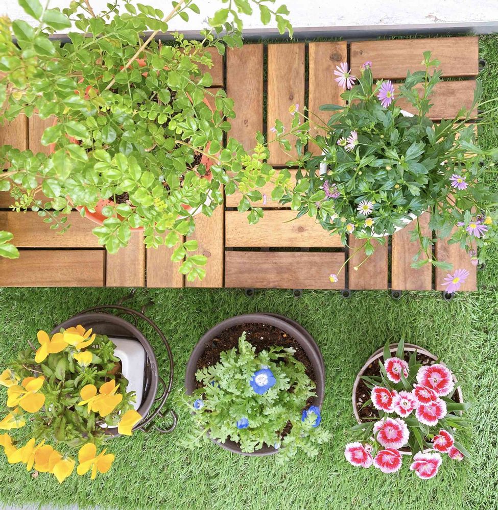 ベランダの掃除が終わったので芝をひきました✨