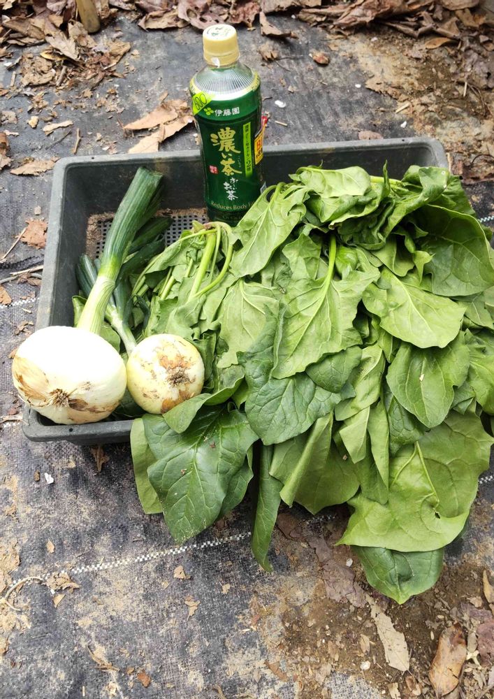 新玉ねぎは 茎まで甘くて美味しいですよね🤗🎶ホウレン草はとう立ちしそうなので全て収穫