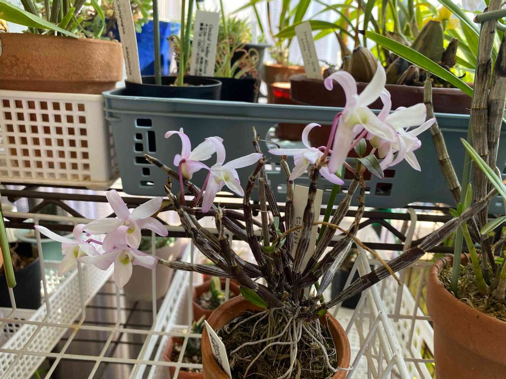 1月に咲いた松島石斛がまた咲きました。今度は9輪です(^^)。