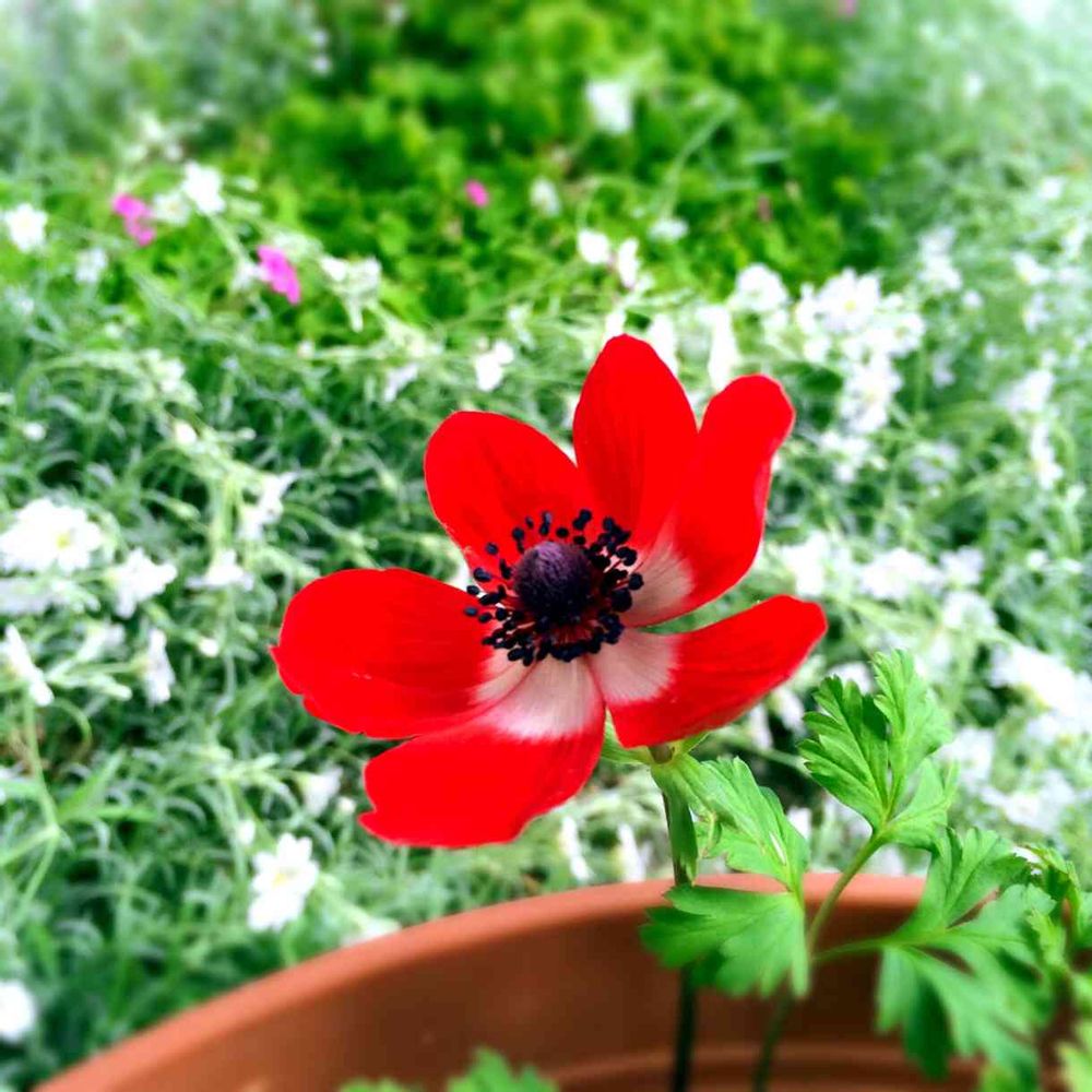 去年の秋に初めて植えたアネモネ。