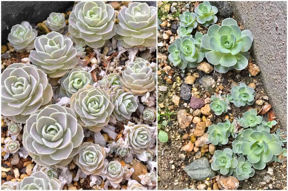 右→地植え達のほうが先に目覚めてたみたいです😆家の基礎周辺で増殖中❣️
