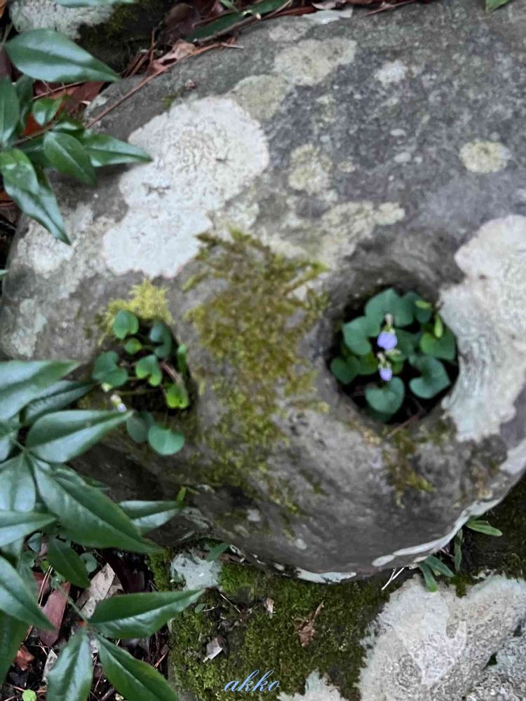 ひみつのアッコちゃんさんの広い庭,庭石の中に菫(すみれ),美しい花の投稿画像