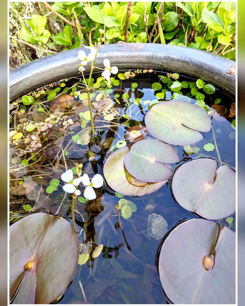 メダカさんも 時々出てくるようになりました いつの間にか咲いたヒメオモダカ(かな?)……こんなところにも春が!良いですね♡(*^^*)