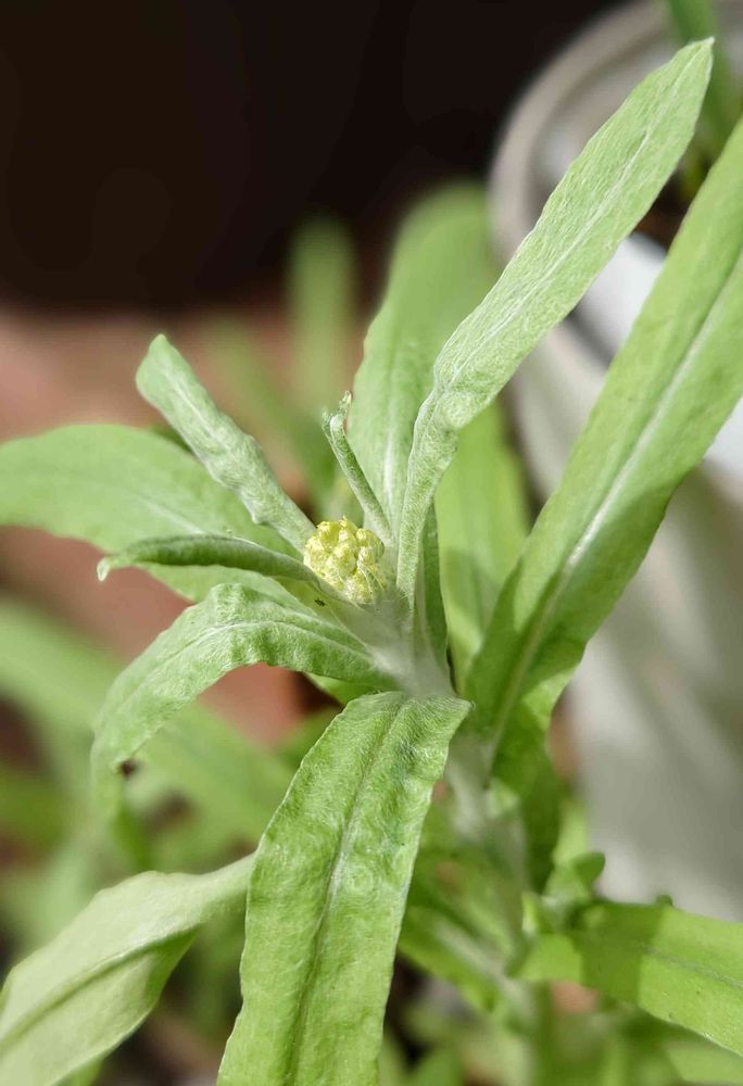 生えて来たハハコグサの周りを鉢で覆ってしまったのでヒョロヒョロに…