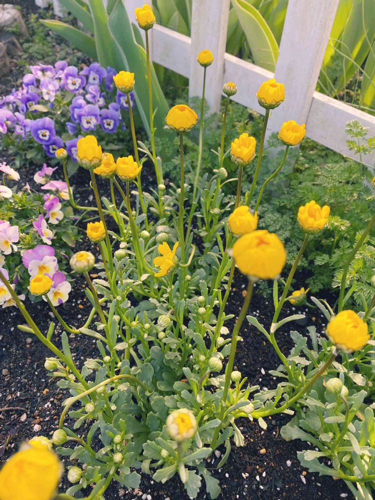 黄色に淡い紫に、奥は水色のビオラでしょうか、、かわいい💕