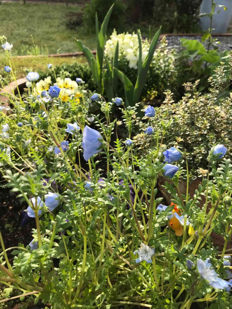 ネモフィラは地植え?私もひたちなか海浜公園(?)を思い描いて地面に移すか悩み中です😁チューリップ咲くと春花壇が華やぐね😊