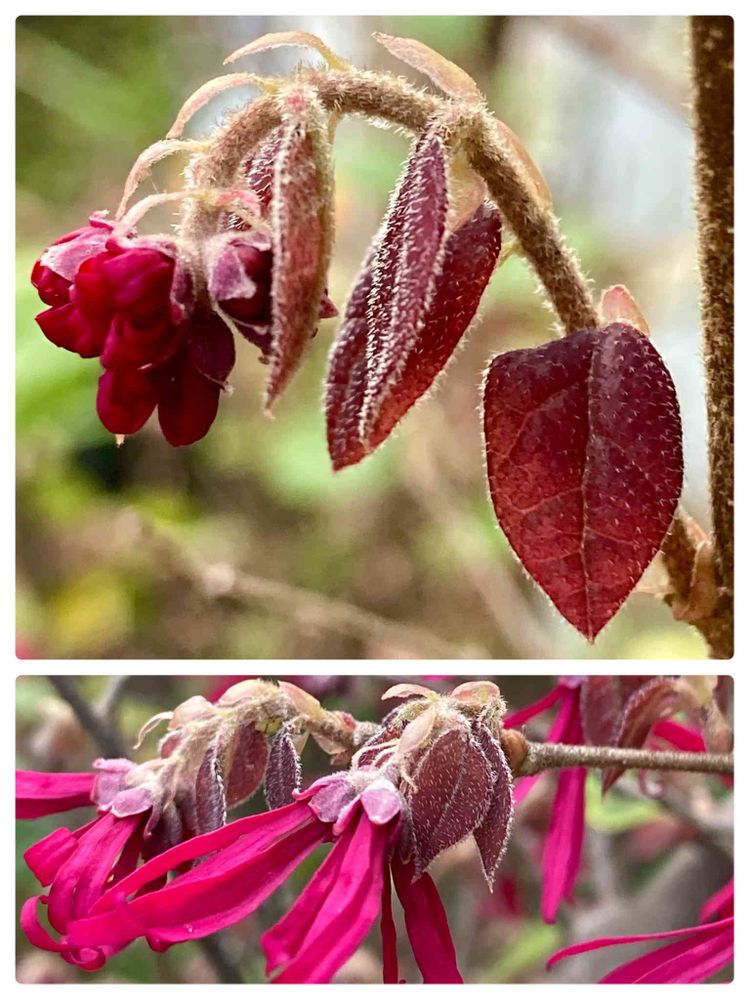 ベニバナトキワマンサクの紅色の美しい蕾に癒やされました。