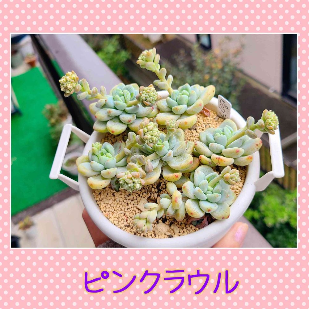 ピンクラウルピョンピョン真冬から出ていました。てっきり脇芽と思っていたら‥うっすら先が黄色くなってきました🌼