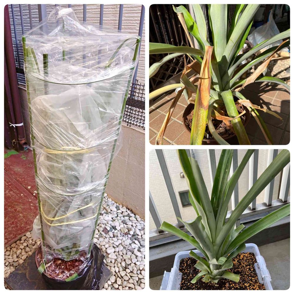 陽の当たったところが茶色く枯れてしまいましたが、本体は無事でした。