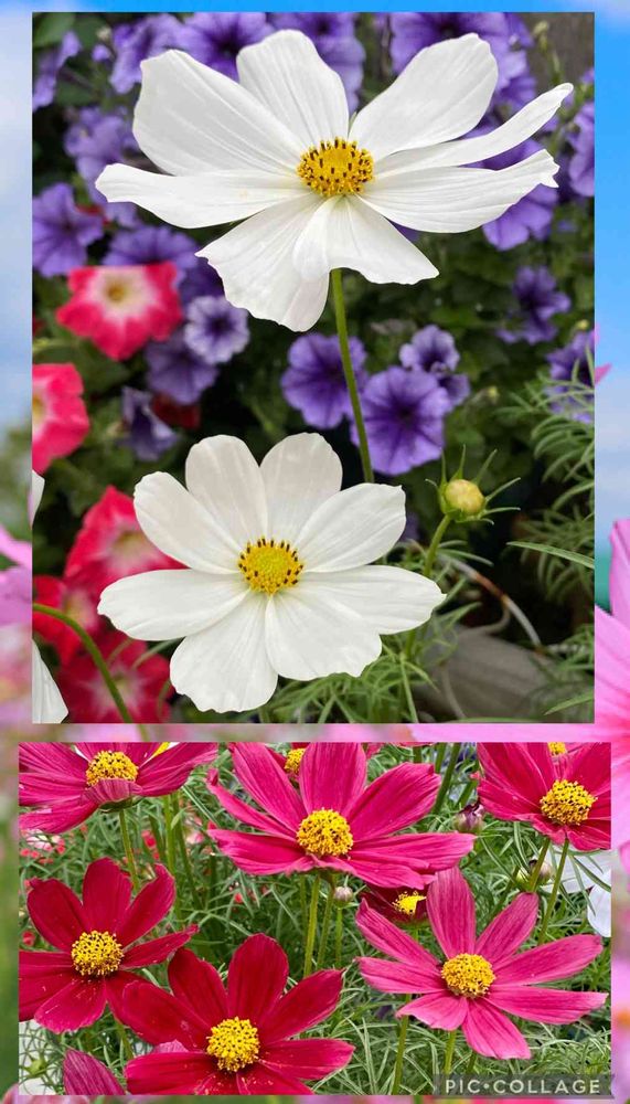 三色のコスモスがもりもりで、私は過去picかと思いました💕