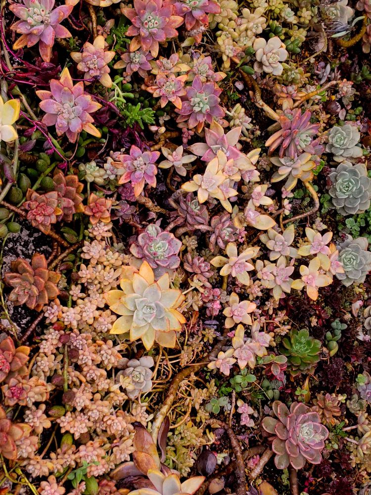 暗い雨の日の 北側花壇の地植え多肉ちゃん達😻💗💜🤍💚💛🧡