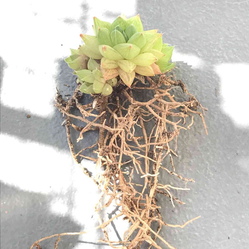 オブツーサの植え付けの時も思ったけど、ハオルチアの根はエケベリアだとかと違って立派。なんか凄い…。