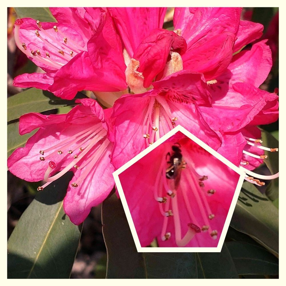 シャクナゲ(石楠花)の花に蜂?が入っていきました☺️